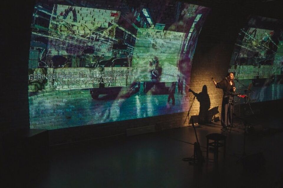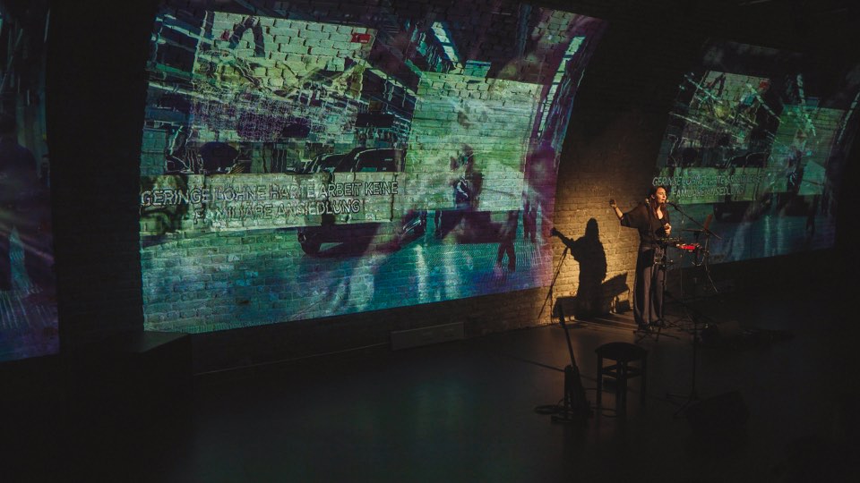 Die Sängerin Nihan Devecioğlu wuchs als Enkelin türkeistämmiger Arbeiter*innen im Umfeld des Werks auf. In Yoldaş schafft sie einen poetisch‐musikalischen Raum für Erinnerungen – an ihre eigene Kindheit im München der 1980er‐Jahre und an die Frauen, deren Arbeit bis heute unsichtbar blieb. Frauenstimmen, kombiniert mit Maschinengeräuschen und dokumentarischem Filmmaterial, fügen sich zu einer lebendigen Collage der Zeitgeschichte und werden zugleich Ausdruck von Selbstermächtigung und weiblicher Solidarität.