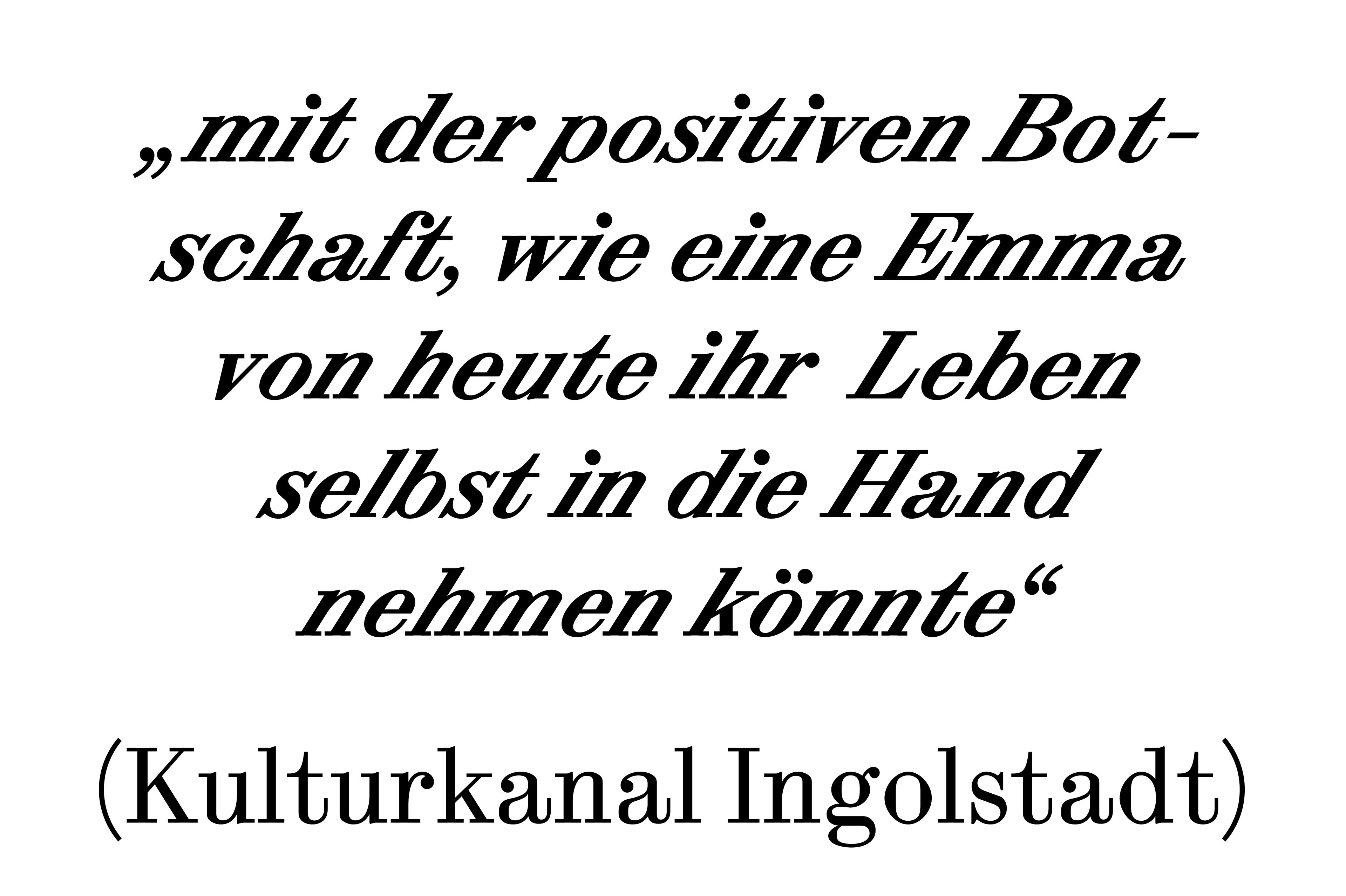 mit: Arpen Daks, Sarah Schulze-Tenberge (Emma), Matthias Gärtner (Charles Bovary), Sascha Römisch (Mutter Bovary), Marc Simon Delfs (Léon), Enrico Spohn (Rodolphe), Mira Fajfer (Lheureuse)