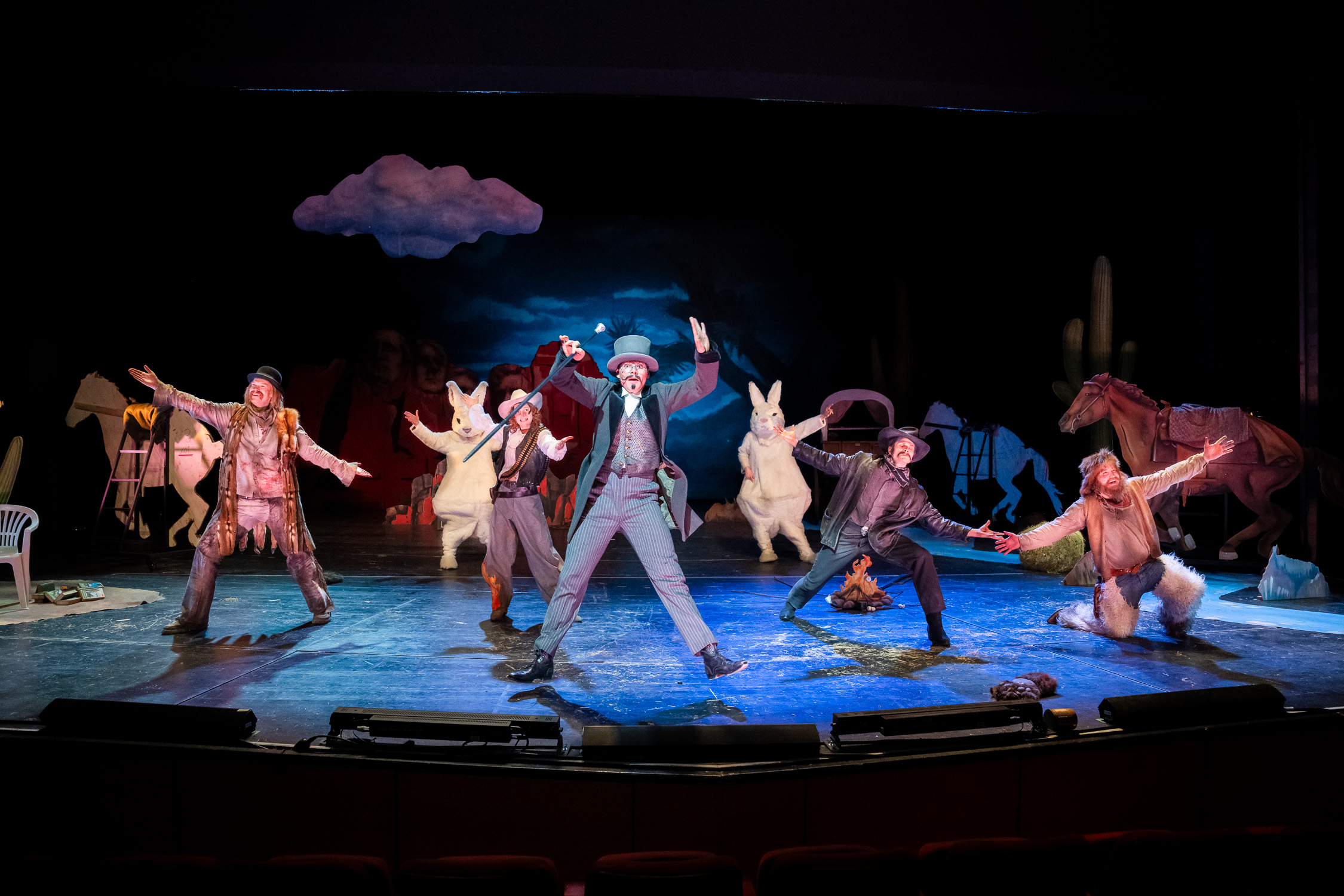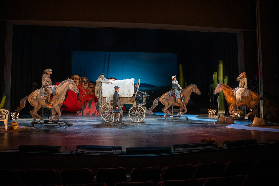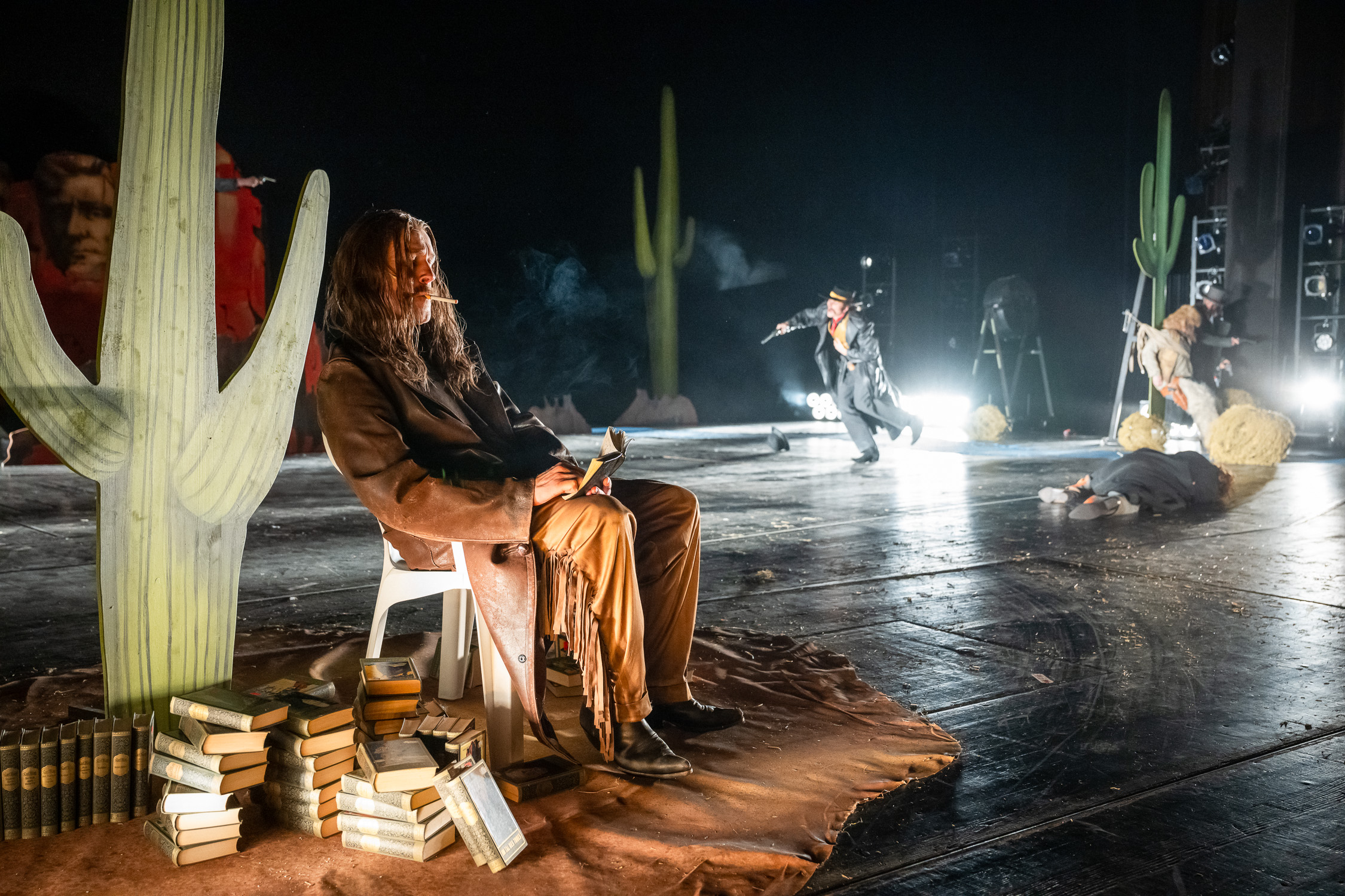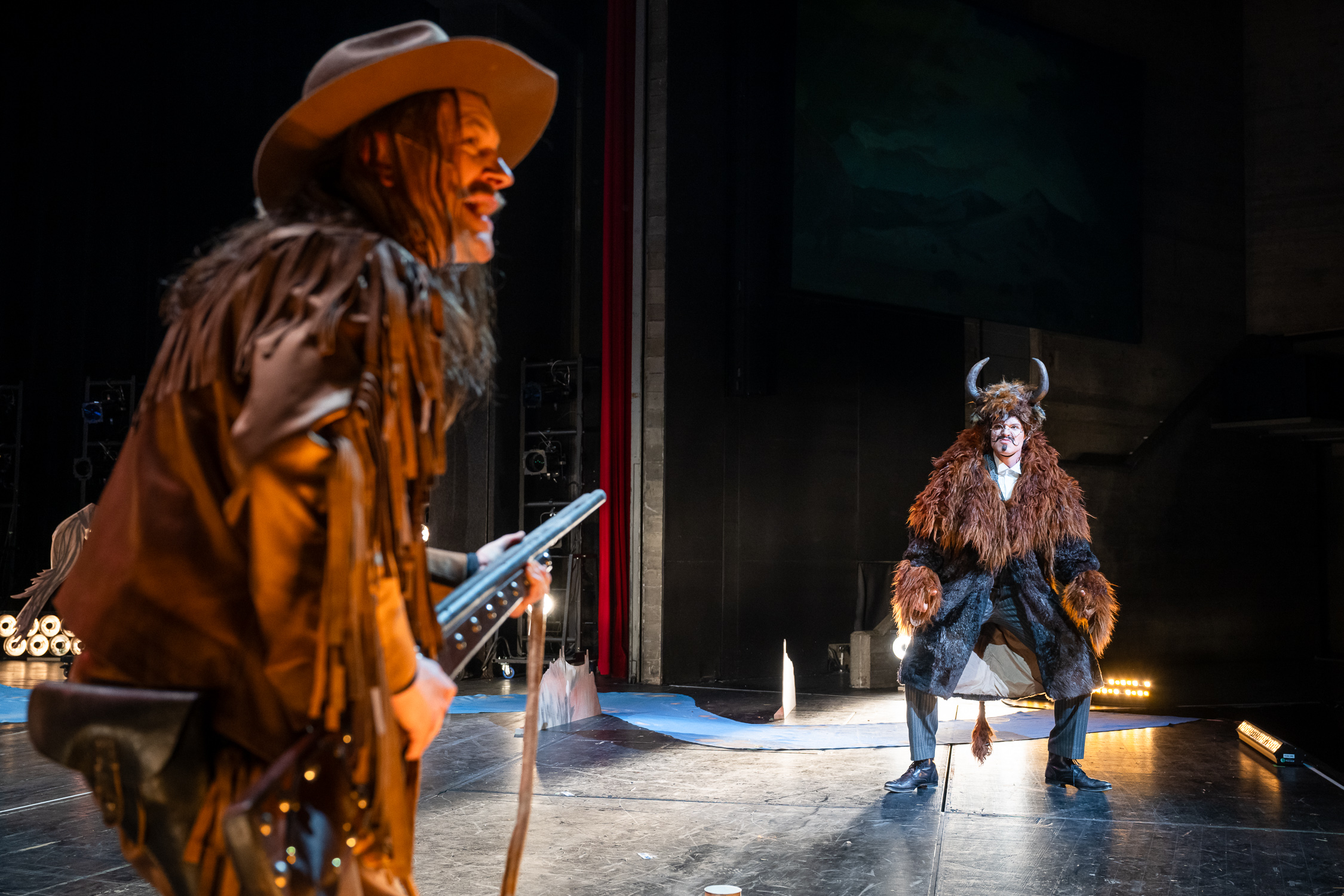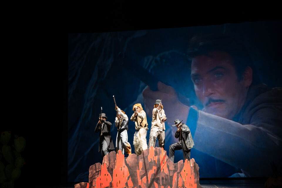 Eine Theatergruppe reist in die USA, um Winnetou zu finden und mit ihm die Idee des Humanismus. Reiseführer spielt der Regisseur, der zugleich Old Shatterhand ist. Bei der Reise durch den Wilden Westen durchlebt die Gruppe Karl Mays Fantasiewelt mitsamt Grizzlys, Bisons, Waffen und Gewalt. Aber waren sie überhaupt jemals im Wilden Westen? Und was ist dieser Wilde Westen, diese Idee der USA? Sind Freiheit, Abenteuer und Selbstverwirklichung in diesem Land noch zu finden? „Winnetou V“ ist ein Streifzug durch die Romane und die Ambivalenz von Karl May sowie ein Trip quer durch die Lust am Abenteuer. Es ist ein Fest der Fantasie und der Erfindung. Wird die Gruppe Winnetou finden?