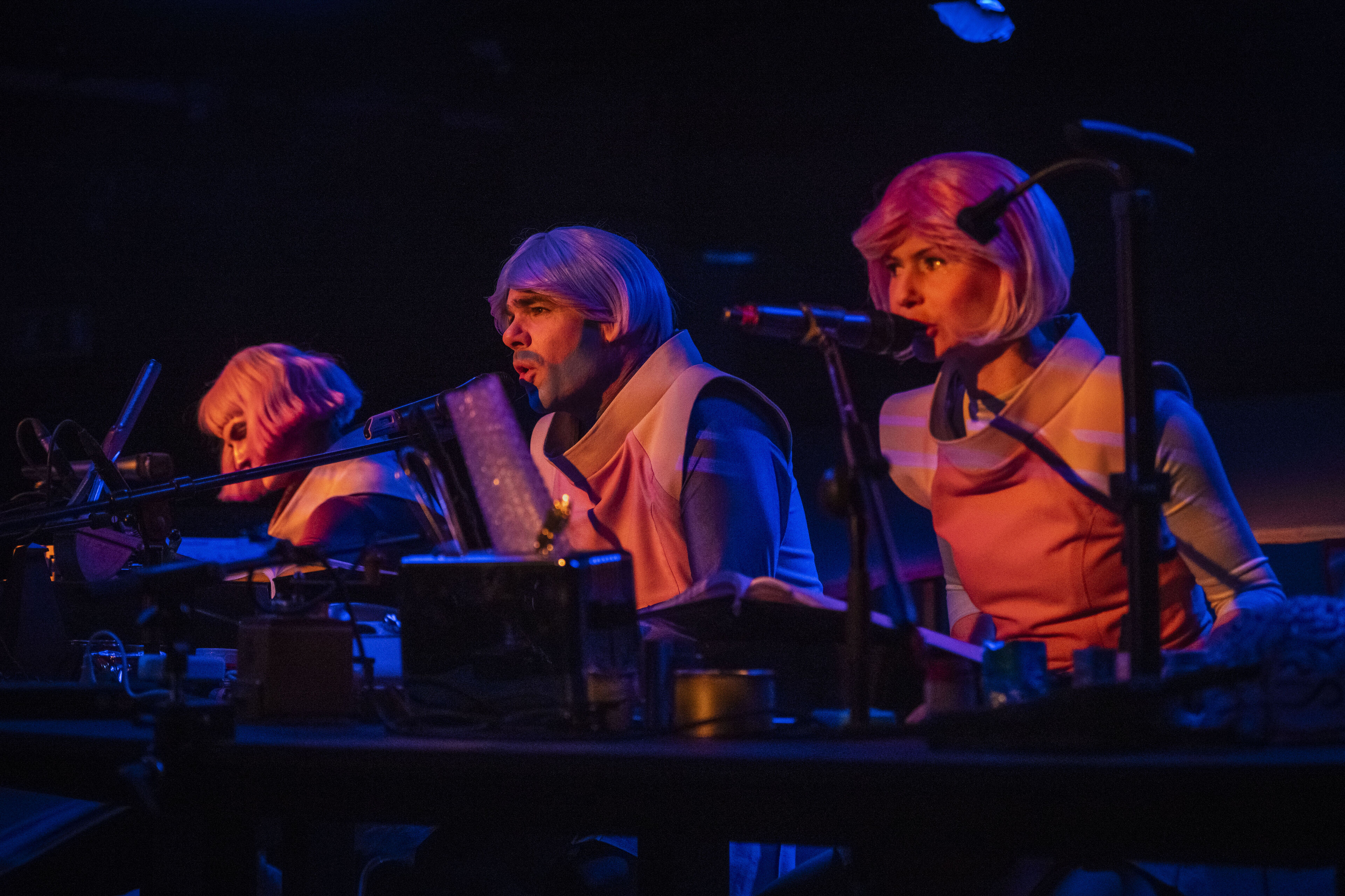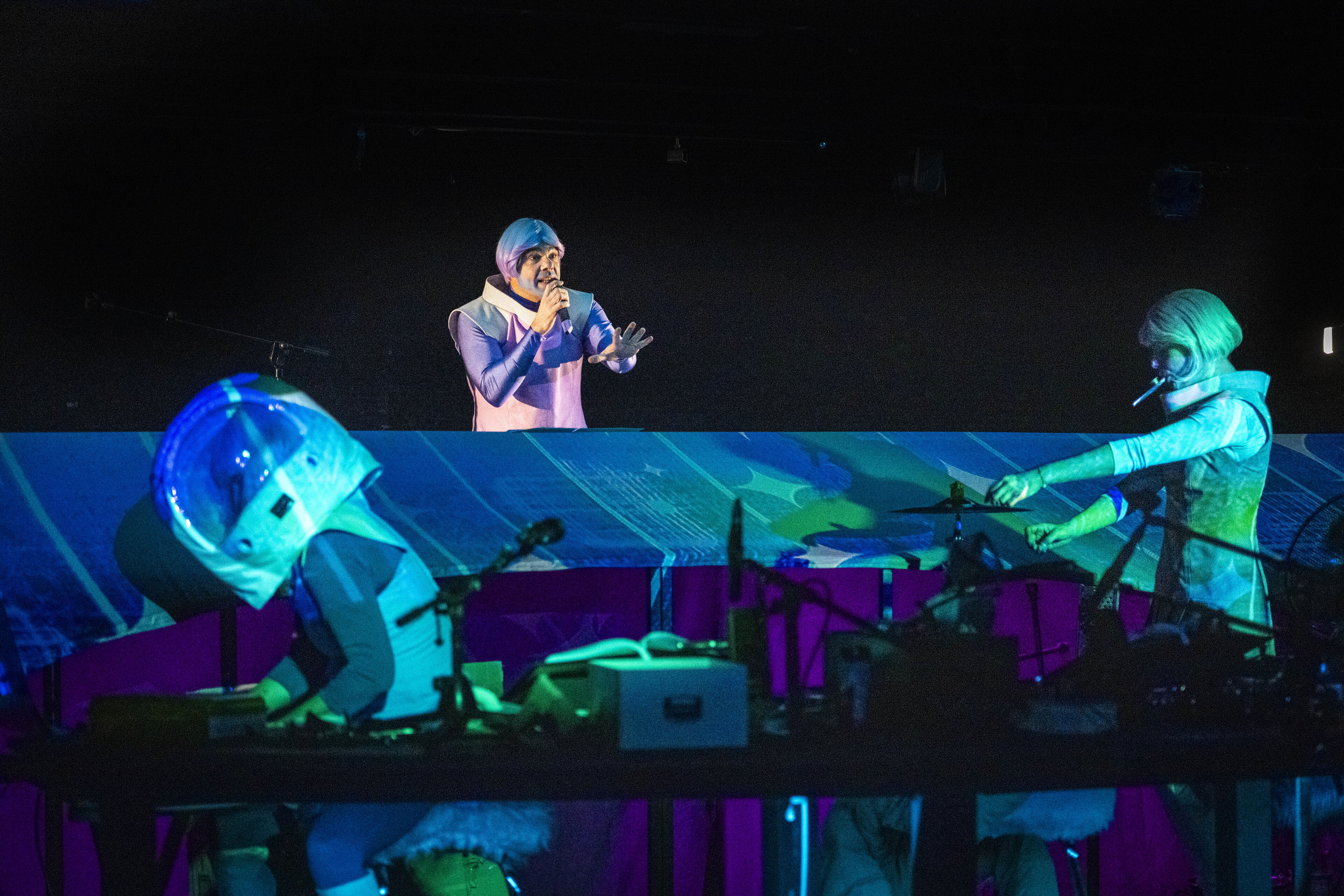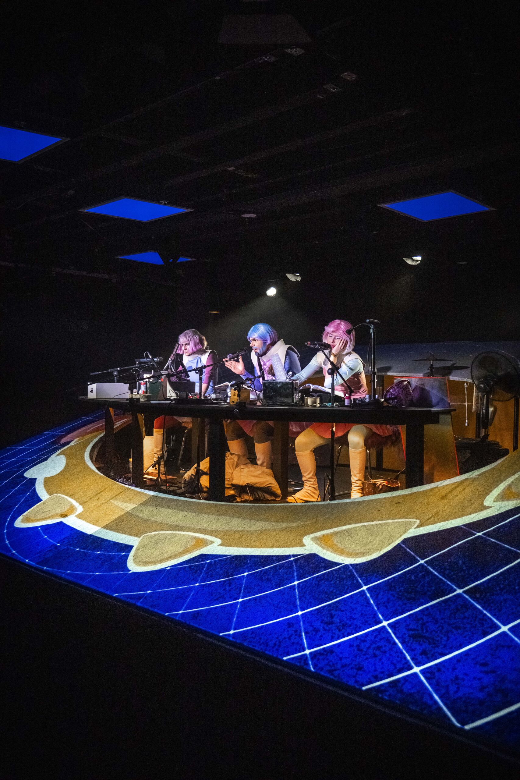 Der Regisseur Eike Hannemann verwandelt die Werkstattbühne in die Schaltzentrale für ein Live-Hörspiel. Schauspieler*innen schlüpfen in die Rollen der schrägen Figuren, sprechen live ins Mikro und erzeugen sämtliche Geräusche eigenhändig: Eine Sprühflasche könnte das Quietschen eines Raumanzugs simulieren, eine Wasserflasche zum interstellaren Sturm werden. Dinge, die eher im Haushalt als im Orbit zu finden sind, verwandeln sich in kosmische Klangwunder. Ein bisschen Science, eine Prise Fiction und ein gutes Quäntchen Fantasie – dieses Live-Hörspiel lädt dazu ein, gemeinsam mit Ijon Tichy über die Absurditäten des Menschseins zu staunen.