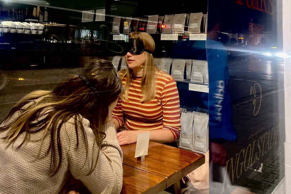 Wir setzen euch einem Menschen gegenüber, den ihr noch nicht kennt und geben euch Schlafmasken. Mit kleinen Gesprächsimpulsen lassen wir euch dann herausfinden, wie es ist, einen Menschen nur über die Stimme kennenzulernen. Im Anschluss nehmen wir die Schlafmasken ab und tauschen uns bei einem Freigetränk gemeinsam über die Erfahrung aus.